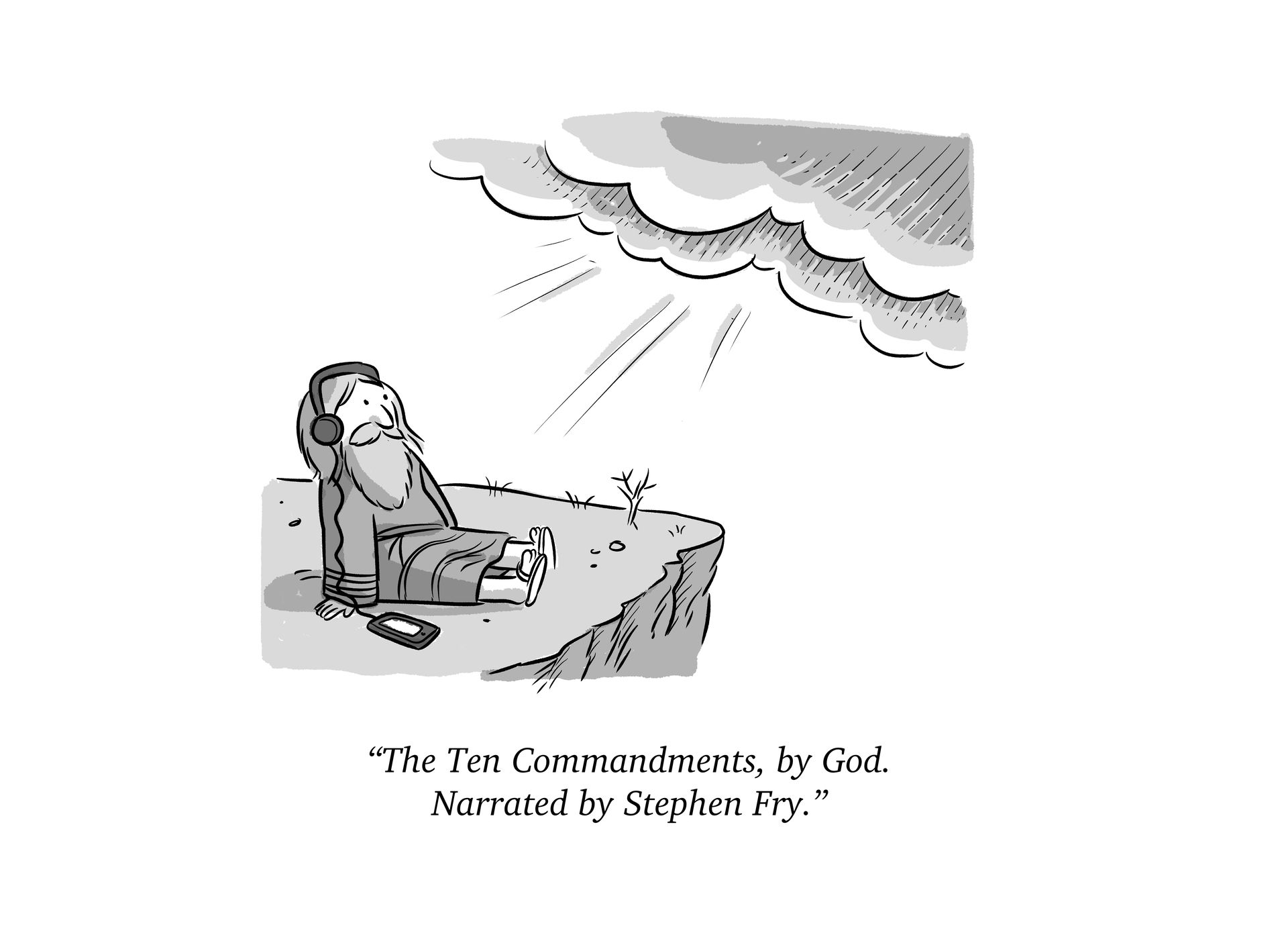 I think I only landed on Stephen Fry because I looked up which celebrities read a lot of audio books. This is not a good way to devise a cartoon.