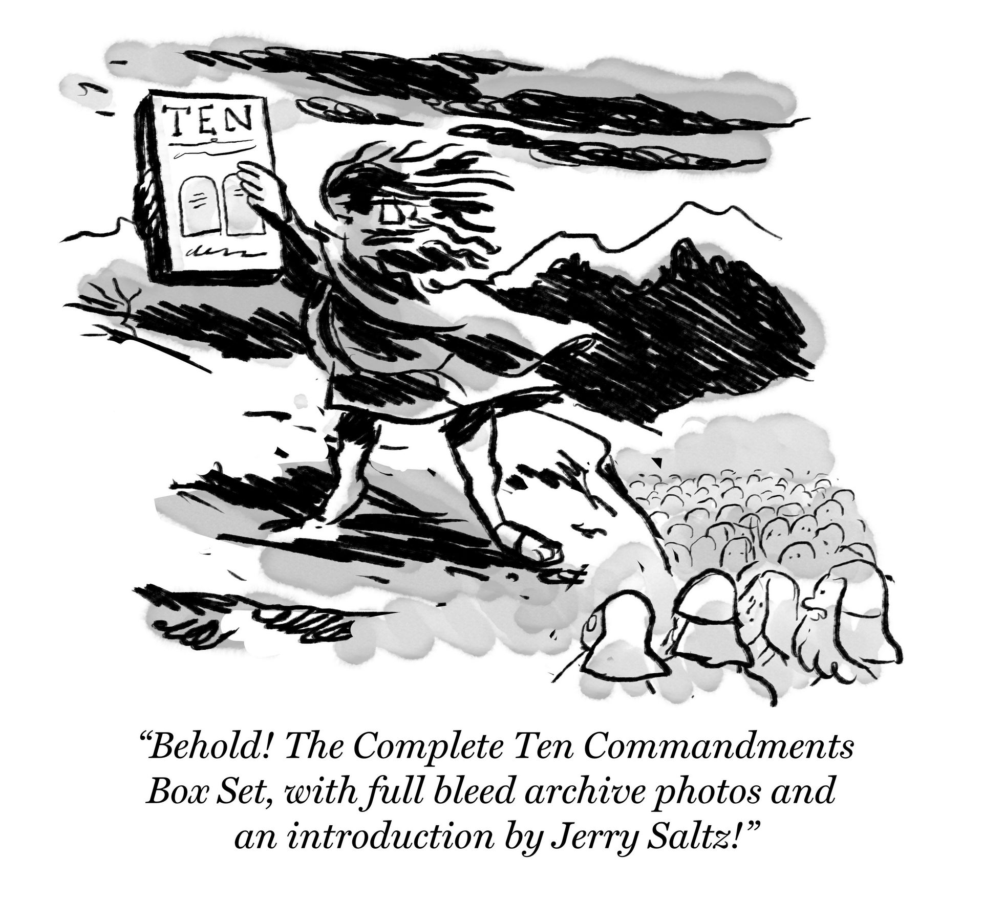Interestingly enough, this is not my first ten commandments cartoon with this exact specificity problem. I drew this a year or so before: